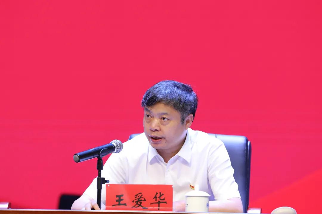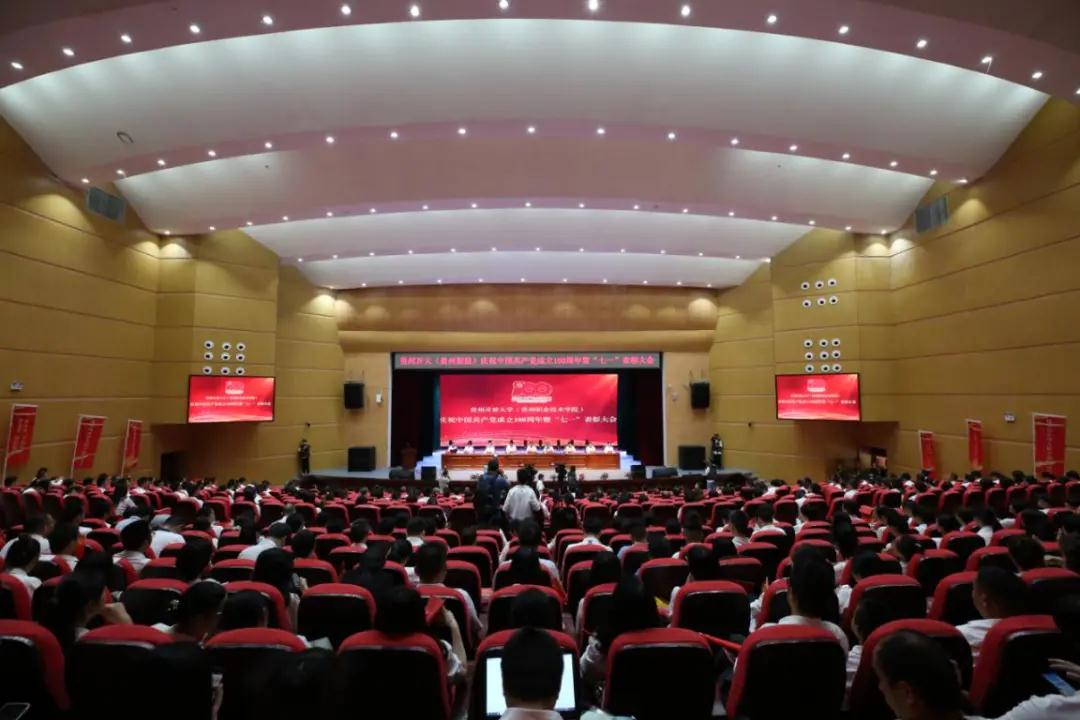 党委书记王爱华在讲话中代表学校党委向受到表彰的114名先进个人、26个先进集体表示热烈祝贺,并向全校共产党员和党务工作者致以节日的问候。王爱华书记表示,今天在此集会深入学习贯彻习近平总书记在庆祝中国共产党成立100周年大会上的重要讲话精神、认真学习省委书记谌贻琴同志在贵州省庆祝中国共产党成立100周年大会上讲话的讲话、共同追忆党走过的100年艰辛而辉煌的风雨历程、共同见证100年举世瞩目的辉煌成就,这即是党史学习教育的一次专题宣讲和专题党课,也是“学党史、悟思想、感党恩、知行合一、抢抓发展”的专题思政课。目的就是进一步激励和动员全校各级党组织、党员、干部和教职工,弘扬伟大的建党精神和脱贫攻坚精神,弘扬新时代贵州精神,坚定信心,振奋精神、开拓创新、锐意进取,共同谱写学校高质量跨越式发展恢弘篇章。