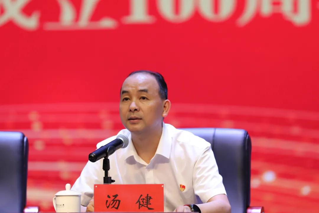 百年征程波澜壮阔,百年初心历久弥坚。7月6日下午,我校庆祝中国共产党成立100周年暨“七一”表彰、脱贫攻坚总结表彰大会在大礼堂举行。省委党史学习教育第十三巡回指导组组长刘昭义同志、组员邓四炳同志、组员宋璨羽同志及在家校领导出席大会。全体教职工、离退休教职工代表、学生代表等参加大会。党委副书记、校长汤健主持会议。