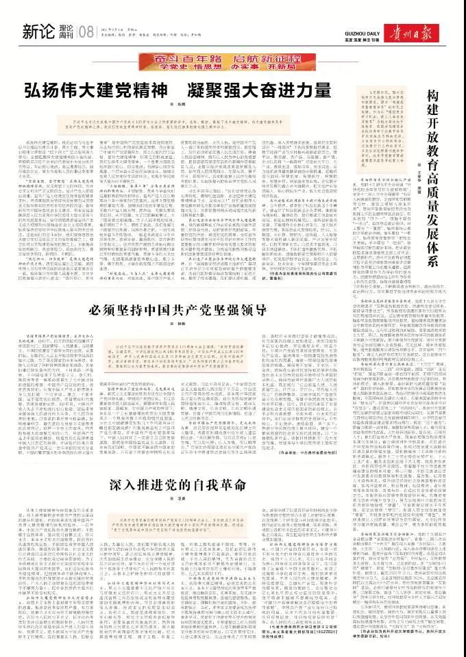 9月1日,贵州日报理论版刊发我校党委书记王爱华和校长汤健理论文章:《构建开放教育高质量发展体系》,详情如下: