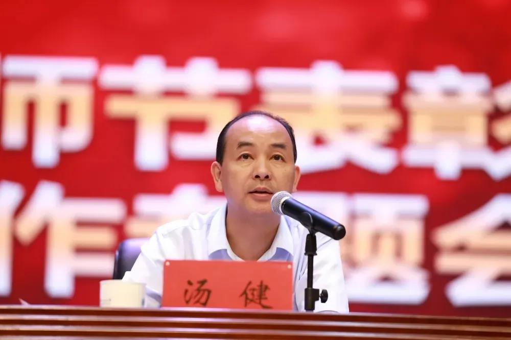 9月10日下午,我校2021年教师节表彰大会暨人才工作专题会议在学校大礼堂举行。党委书记王爱华,党委副书记、校长汤健,党委副书记龚辉,副校长李勤,副校长汪红,党委委员张仁俊出席会议,全体教职工、荣休教师代表、2021年新入职教师及学生代表参加了会议。会议由校长汤健主持。