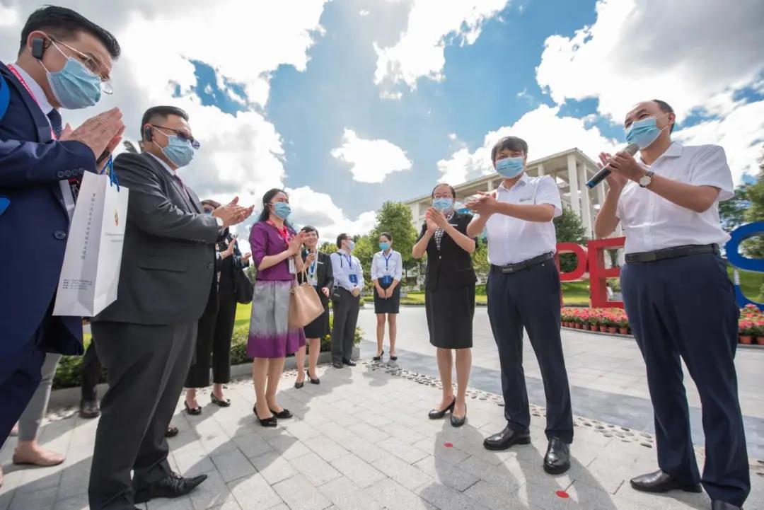 9月25日下午,东盟国家驻华使馆及中国——东盟中心教育官员“贵州行”参访团一行赴贵州开放大学(贵州职业技术学院)参观考察。在学校OPEN广场,伴随着侗族大歌,学校党委书记王爱华,党委副书记、校长汤健代表学校对参访团一行的到来表示热烈欢迎,汤健校长简要介绍了学校办学特色和改革发展情况,并希望借中国—东盟教育交流周平台持续加强与东盟各国的交流合作,在“知行合一、共创共赢”中推动开放教育、职业教育高质量发展。