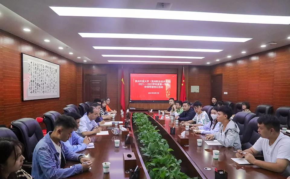 近日,贵州开放大学(贵州职业技术学院)行政楼6楼会议室时常有学生鱼贯而入,场面一度热闹非凡,到处洋溢着欢快的气氛,原来是贵州开放大学(贵州职业技术学院)开设了校领导接待日活动,党委副书记、校长汤健与相关职能部门负责人参加,邀请学生代表面对面、心贴心开展深入交流,了解学生学习生活上存在的问题及诉求,聆听学生意见和建议。