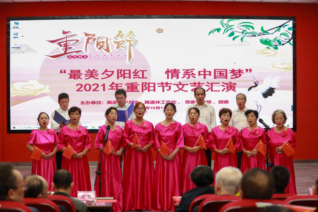 为欢度重阳节,离退休老年大学学员们和学校团委经过精心准备和辛苦的排练,为老年朋友们献上了一场文艺盛宴。大家同喜同乐、同歌同舞,为中华人民共和国成立72周年和重阳佳节送上温情的祝福。这次演出的节目大部分由老同志自编自导自演。节目形式多样,包括合唱、舞蹈、诗歌朗诵等。文艺汇演在小合唱《共筑中国梦》《唱支山歌给党听》中拉开序幕,歌曲深切表达了老同志对祖国母亲、对我们党的无限忠诚和热爱。