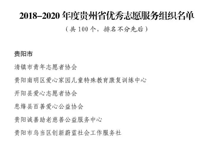 为褒扬广大志愿者、志愿服务组织在我省政治、经济、社会、文化、生态建设各个领域和脱贫攻坚一线为推进志愿服务制度化、社会化、专业化、常态化作出的积极贡献,共青团贵州省委、贵州省精神文明办、贵州省民政厅决定对2018-2020年度志愿服务事迹突出的志愿者和志愿服务组织进行表彰。
