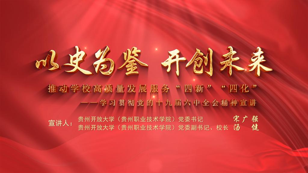 党的十九届六中全会是在重大历史关头召开的一次具有重大历史意义的会议。习近平总书记对学习宣传贯彻全会精神高度重视,提出了明确要求。贵州开放大学(贵州职业技术学院)党委立即行动起来,充分发挥开放教育的优势,按照“七个讲清楚讲透彻”的要求,吃透精神实质,把握核心要义,第一时间录制了党委书记宋广强,党委副书记、校长汤健通过 “1+1” 方式专题宣讲党的十九届六中全会精神的课程,11月23日,以网络在线方式面向全系统、全校教职工生宣讲,迅速掀起学习热潮,扎实推进党史学习教育持续深入,推动广大教职工生把思想和行动统一到党中央重大决策部署上来,以优异成绩迎接党的二十大胜利召开。