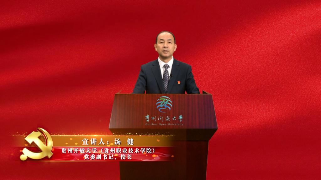 汤健校长就第二篇章《开创未来:百年起点建设多彩贵州新未来》展开宣讲,他指出,对创造了“黄金十年”发展速度的贵州来说,如何在“学思践悟”党的十九届六中全会精神中抢抓新一轮的发展机遇,是深入实施乡村振兴、大数据、大生态三大战略行动,围绕“四新”主攻“四化”,奋力开创百姓富、生态美的多彩贵州新未来的关键所在。他认为,要深入贯彻落实党的十九届六中全会精神,必须牢牢把握“三个始终”:要始终立足终身教育体系构建;要始终面向贵州重大战略需求;要始终聚焦推进乡村全面振兴。