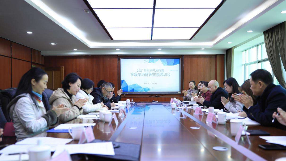 为加强全省开放大学系统建设,切实提升全省开放教育学籍学历管理能力,交流本年度工作经验,强化具体业务操作的规范性和时效性,2021年11月24日,贵州开放大学在八鸽岩校区召开“2021年全省开放教育学籍学历管理交流培训会”,会议由八鸽岩校区管理处孙毅同志主持。学籍科全体人员,11个分校、学院相关工作人员参会。