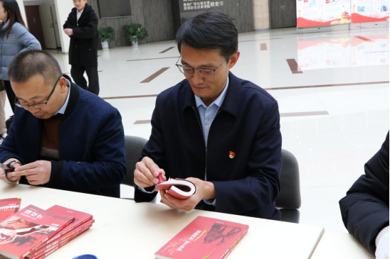 在廉政公园初心广场,老党员宋广强同志、钱庆生同志向组织部党支部、商业与贸易学院学生第二党支部党员教师赠送书籍《习近平的七年知青岁月》作为集中政治生日的“生日礼物”。在鲜红的党旗下,党员教师代表谢冬梅、朱行两名同志作了发言,立志做到政治强、情怀深、思维新、视野广、自律严、情怀正,许下“为党的事业奋斗一生”的铮铮誓言。正如组织部党支部党员朱行同志在发言中说到的那样:“共产党是什么?共产党就是自己有一条被子,也要剪半条给老百姓的人。成为一名党员意味着责任与担当,今天是11月26日,今天是我的第一个政治生日,这提醒着我对党和人民的一心一意,这提醒着我入党需一生一世。在今后的每一天,我都会不断鞭策自己,不忘初心,砥砺奋进,为党的亊业奋斗一生”。