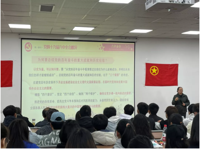 李勤副校长以电影《长津湖》为切入点,围绕党的十九届六中全会概况、中国共产党百年奋斗历史意义和历史经验、党的十八大以来党和国家事业取得的历史性成就、青春之我汲取奋进力量四个方面为参会师生带来了一堂生动的宣讲。