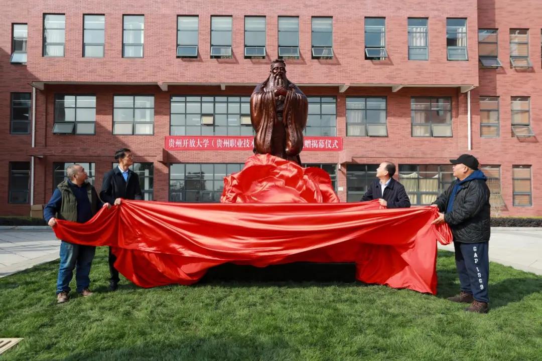 仪式上,党委副书记、校长汤健代表学校向致力弘扬中国传统文化的杜森先生致以敬意,向关心支持学校教育事业发展的吴承铁先生表示谢意。他指出,学校是传承文明和传播知识的重要阵地,孔子像落户学校既是继承和发扬孔子的教育思想和理念,也是校园文化氛围和文化品位的凝练和升华。学校将从孔子教育思想中汲取智慧,赓续中华优秀传统文化,担当立德树人使命,落实“敬学广惠 有教无类”教育理念,秉承“自强 求知 力行 有为”的校训,聚焦学校改革发展重点任务,推进贵州特色教育强省建设,奋力书写学校高质量发展新篇章!