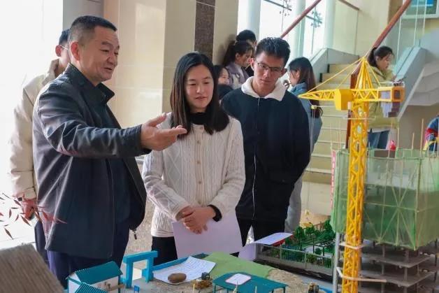 学校党委书记宋广强、党委副书记龚辉、副校长汪红一行到比赛现场进行指导,观看参赛建筑模型,了解比赛场地布置、评委老师评选流程以及学生竞赛情况,对大家的付出和学生的表现给予肯定。同时要求相关工作人员要精心组织,保证比赛公平公正,并不断总结经验,提高比赛质量。学校领导在参观的同时也参与了投票打分环节。赛场上,团队选手向评委们详细讲解了建筑模型制作理念、背景及构成要素,让评委们对作品和学生所学知识有了深入了解。随后,校领导仔细查看了模型及展板介绍,对每位同学的辛苦付出以及作品给予了高度肯定。参赛模型将在赛后持续展出一周。