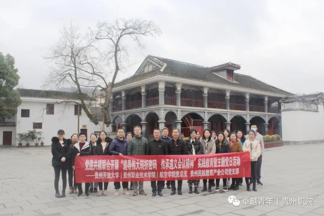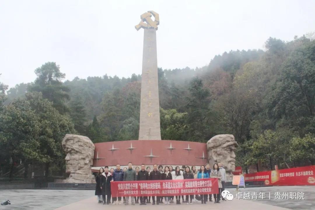 为全面学习贯彻党的十九届六中全会精神,弘扬革命光荣传统,赓续红色血脉,传承伟大的长征精神,进一步增强航空学院、贵州民航教育产业公司全体教职工开新局谋发展、凝心聚力促和谐、融合优势出新绩的信心和决心,2021年12月16日,航空学院党总支联合贵州民航教育产业公司党支部赴遵义开展“追寻伟大转折密码传承遵义会议精神”主题党日活动。航空学院党总支书记黄伟春同志、贵州民航教育产业公司执行董事、总经理、党支部书记于海同志出席活动,航空学院及贵州民航教育产业公司部分党员和无党派人士代表、学生积极分子代表参加了本次活动。
