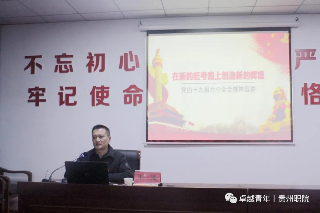 参观完会址后,全体人员集中前往遵义会议培训会议室,组织开展上党课、情景教学探讨、集体过“政治生日”等活动。贵州民航教育产业公司执行董事、总经理、党支部书记于海同志为全体人员进行党的十九届六中全会精神宣讲。他从要弄明白学什么的问题和要搞清楚怎么做的问题等两个方面阐述我们如何用党的十九届六中全会精神武装头脑、指导实践、推动工作。对此,他希望全体党员和教职工一是要“练本领”。要练就过硬的讲政治、讲学习本领,不断提升群众工作的本领,扎实狠抓工作落实的本领以及驾驭风险的本领;二是要“有格局”。要有工作超前谋划登高望远的意识、要有团结自信包容大度的开阔胸襟、更要有淡泊名利无私奉献的气度;三是要“担硬担”。面对急难险重工作要甘于吃苦耐劳、处理重大工作要客观冷静地分析,妥善有效地处理、要时刻为人民群众利益着想,处事做到公平公正。