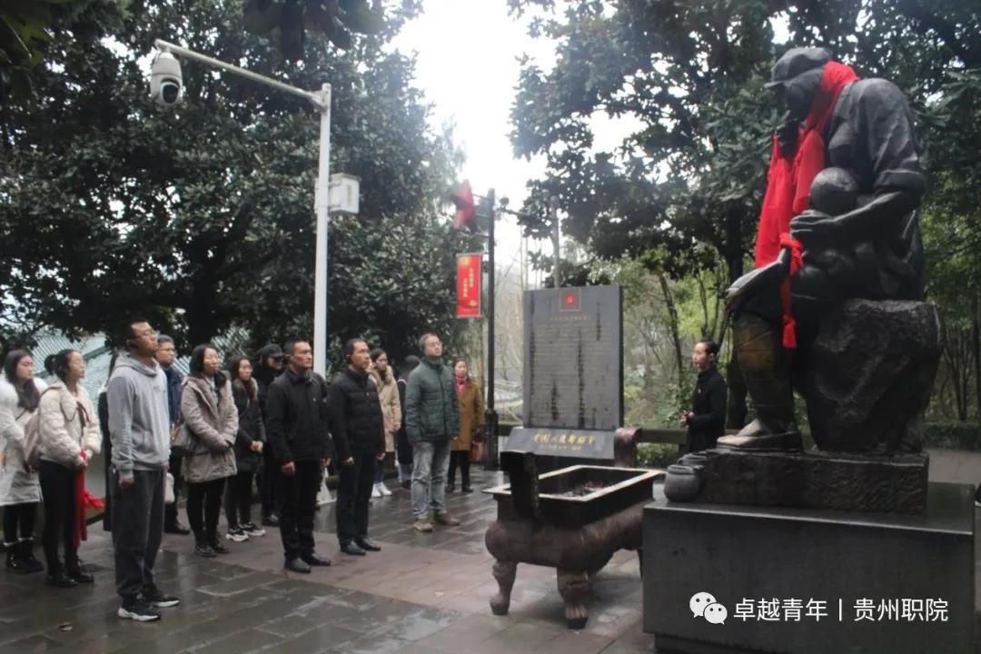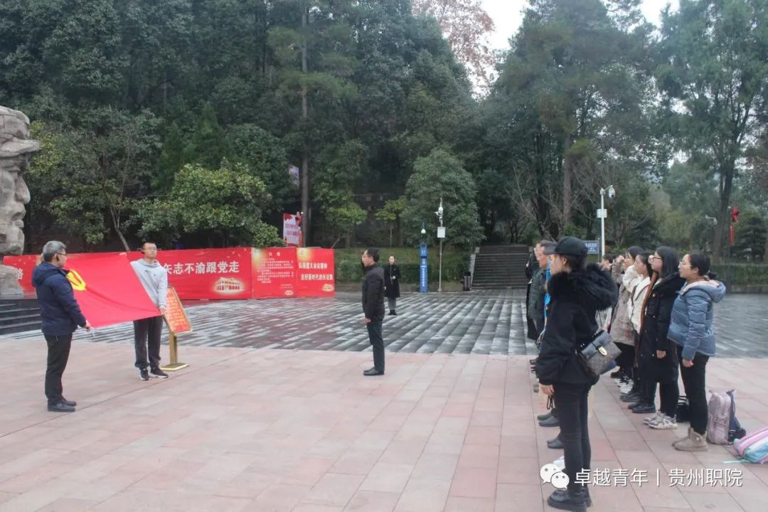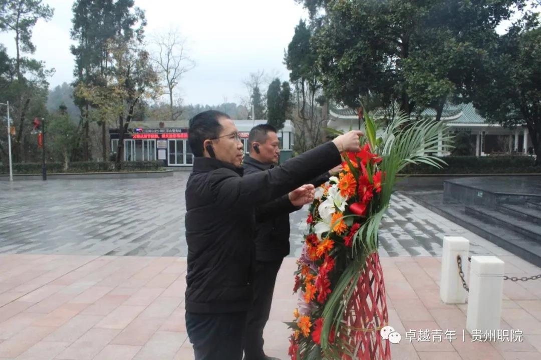 全体人员来到遵义红军山烈士陵园,在红军山革命烈士纪念碑前敬献花篮及缅怀先烈,并进行重温入党誓词和现场党课教学活动。