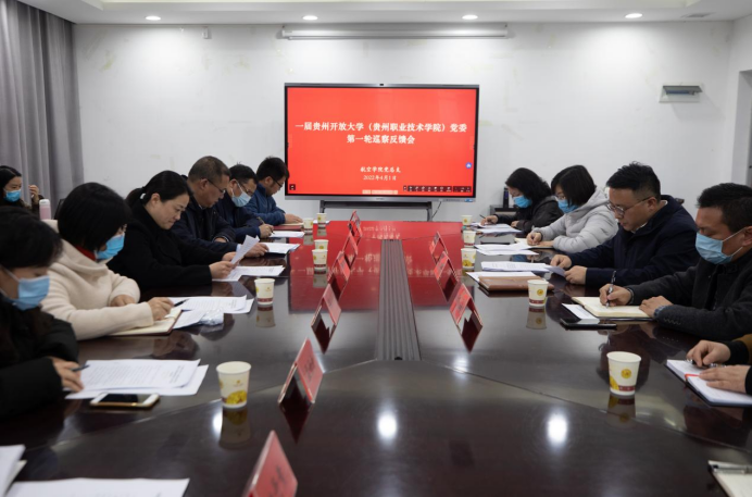 根据贵州开放大学(贵州职业技术学院)党委巡察工作领导小组的部署,2022年4月1日,一届贵州开放大学(贵州职业技术学院)党委第一轮巡察第一巡察组向航空学院党总支反馈巡察情况。第一巡察组组长李光和代表巡察组反馈了巡察情况,校党委委员、副校长于立群代表学校党委出席反馈会并提出工作要求,航空学院党总支书记李江波同志主持反馈会并就做好巡察整改工作作表态发言。