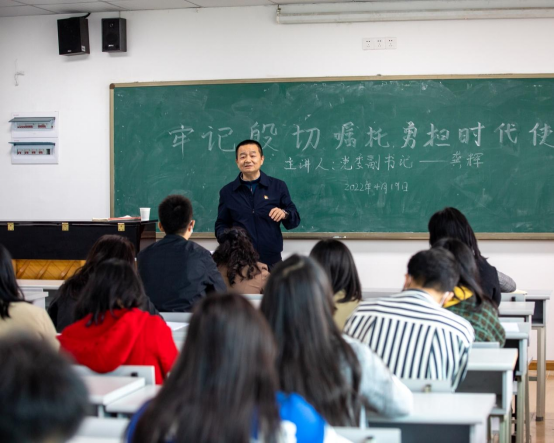 课堂上,龚辉副书记以《国务院关于支持贵州在新时代西部大开发上闯新路的意见》(国发〔2022〕2号)为切入点,嘱咐同学们要珍惜新时代带来的每一个发展机遇,刻苦学习,拼搏向上,以实际行动展示新时代青年学子的良好风貌,努力成长为国家的栋梁之材。龚辉副书记带领同学们重温了“生命至上,举国同心,舍生忘死,尊重科学,命运与共”的伟大抗疫精神,着重分析了现阶段国内外疫情防控形势,希望同学们能够克服困难,调整心态,遵守防疫要求,从这段难忘的人生经历中汲取正能量,不忘初心,励志前行。