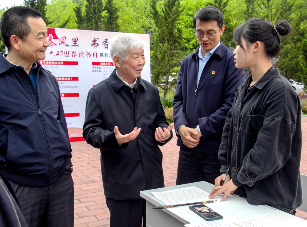 为激发全校师生爱党爱国热情,营造积极良好的读书氛围,丰富我校师生课余文化生活,4月22日,学校图书馆、关心下一代工作委员会在红色文化广场举办“行路春风里·书香满校园”第八届书法比赛,通过现场书写习近平总书记关于乡村振兴的相关讲话内容,启发同学们在挥毫泼墨的同时,学习了解近年来党和国家乡村振兴的发展思路和战略方针,抒发以天下事为己任的豪情壮志,把乡村振兴战略通过书法竞赛的形式浸润到师生的心田中。此次活动得到了校领导的高度重视,学校党委书记宋广强,党委副书记龚辉,党委委员、副校长李勤,党委委员、纪委书记骆最勇莅临现场。