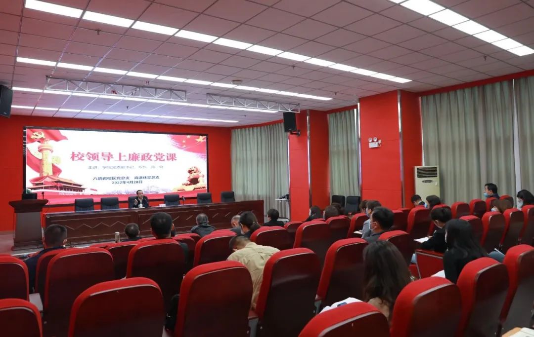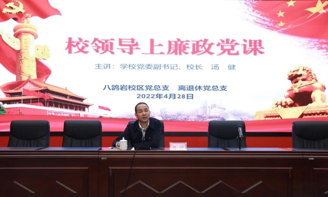 为扎实推进党风廉政建设,持续维护学校良好的政治生态,推动全面从严治党向基层延伸取得更大实效,落实“五项行动”的要求,进一步筑牢教职工廉洁自律思想防线,2022年4月28日上午,学校党委副书记、校长汤健同志为八鸽岩校区全体教职工上了一堂生动的廉政党课。