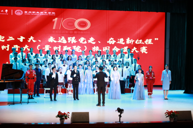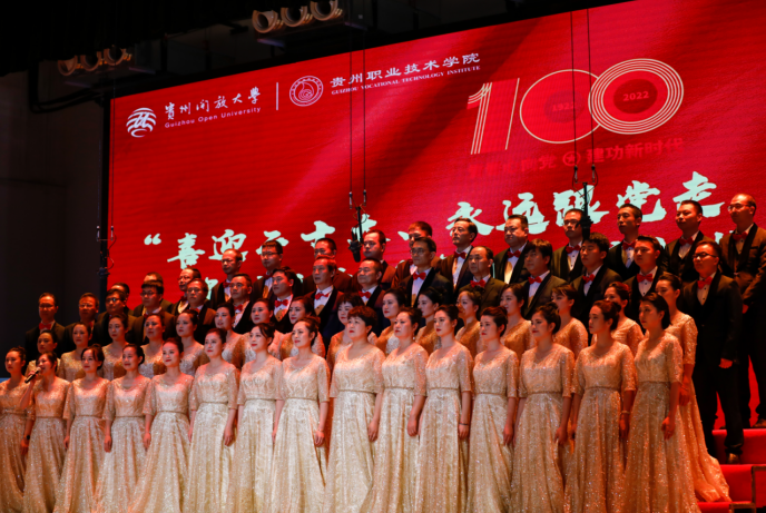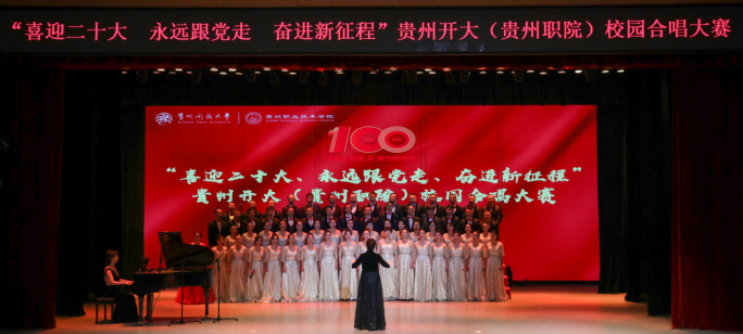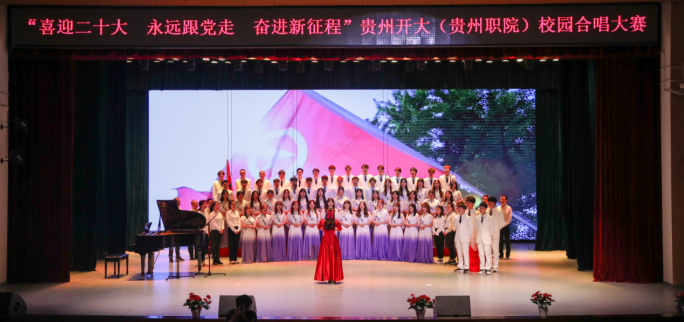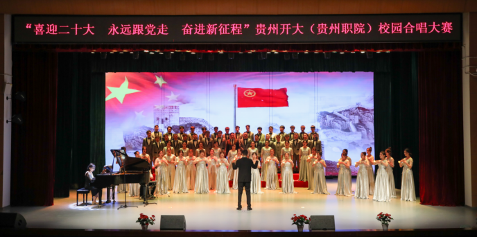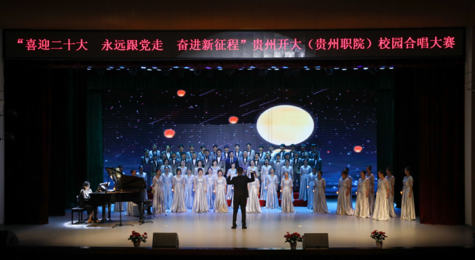 为深入学习习近平新时代中国特色社会主义思想,弘扬伟大爱国主义精神,激发青年担当,展示全校师生蓬勃向上的精神风貌,进一步深化“党建带团建”工作,推动学校美育教育,丰富校园文化生活,以昂扬的姿态迎接党的二十大胜利召开,2022年5月9日,贵州开放大学(贵州职业技术学院)“喜迎二十大、永远跟党走、奋进新征程”校园合唱大赛在学校大礼堂激情唱响。共青团贵州省委员会副书记李剑、学校党委书记宋广强、党委副书记、校长汤健等在家校领导出席活动并观看比赛。