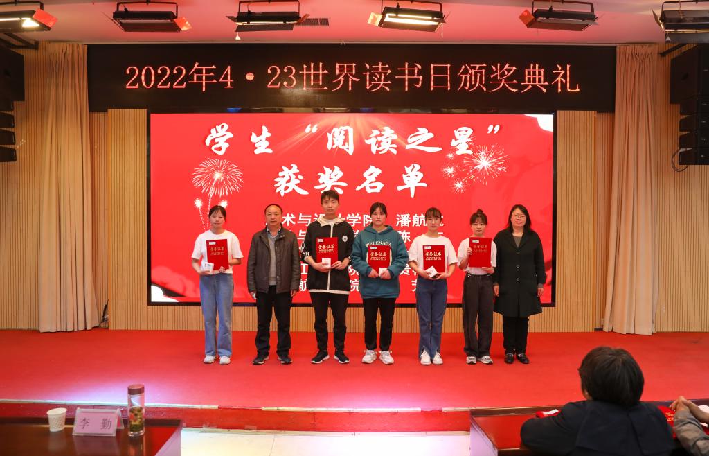副校长李勤为颁奖仪式致辞。她鼓励师生尊重知识、崇尚阅读,并邀请获得本年度的“阅读之星”代表上台发言。信息工程学院党总支书记姚楠作为教师组代表上台发言。他从阅读时的困惑道出阅读对人生的重要性,浅谈读书时的心得体会。艺术与设计学院潘航航同学代表学生组上台作获奖感言,分享了阅读《风沙星辰》的读书感想,鼓励大家一起学习,共同进步。