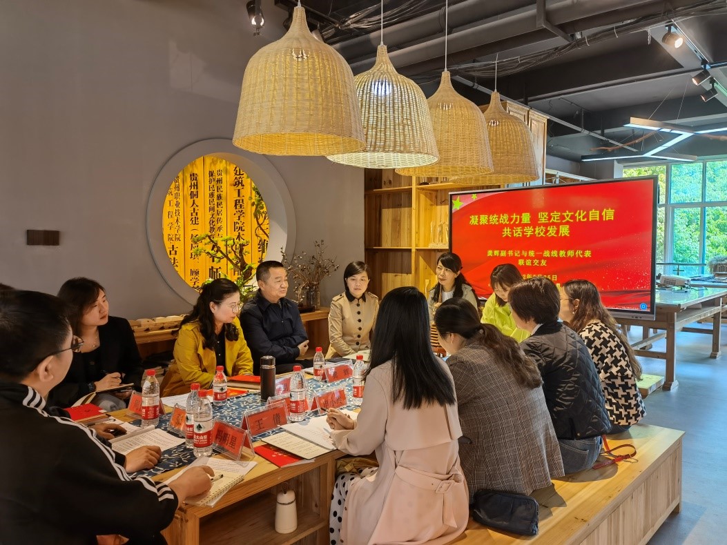 民建、九三学社、知联会教师代表在会上畅谈了学习统战理论的心得。九三学社贵州电大支社王倩老师在发言中表示“在教学管理岗位中,除了要注重业务学习外,还要加强政治理论学习,不断提高政治站位。”建工学院教师胡蓉分享了加入民建党后的感受“通过参加组织活动,结识了一批行业精英,他们在自己的领域里为中华民族伟大复兴做出了贡献。与他们交流开阔了自己的眼界,同时也为学校、学生搭建了与企业互通的桥梁。”其他参会人员也从不同角度,不同层面谈了对统一战线工作的认识。