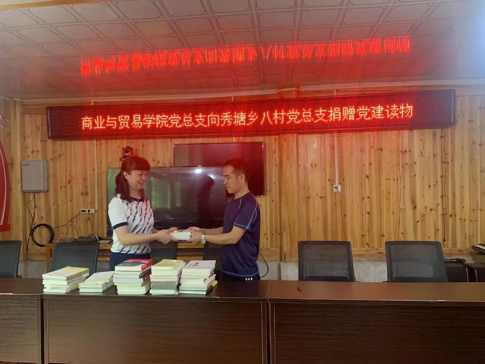 勤劳读书催人奋进,乡村振兴你我同行。为帮助当地村民提高知识水平、文化素质、就业能力,商业与贸易学院党总支向秀塘乡八村村党总支捐赠书籍40本,希望实现用知识助力乡村振兴、建设美好家园的梦想。