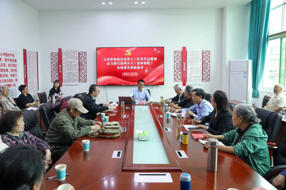 6月6日下午,省第十三次党代会代表、学校党委书记宋广强到离退休党总支宣讲省第十三次党代会精神、离退休党总支各支部书记、支委和党员参加宣讲学习。