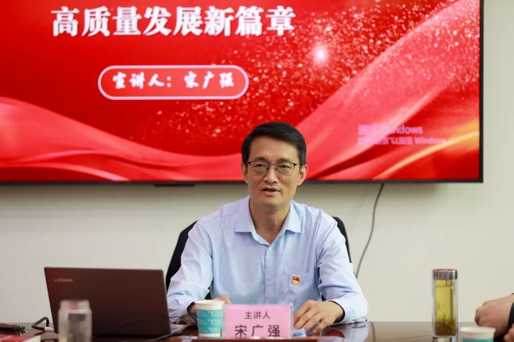 宋广强从大会基本情况、主要成效经验、贯彻落实意见等方面展开宣讲,深入解读了省第十三次党代会精神。宋广强指出要坚持以高质量统揽全局,坚持稳中求进工作总基调,持续深化“双轮驱动,多元并举”的战略布局,并结合我校实际,就如何深入贯彻落实大会精神提出了“四个推进”: