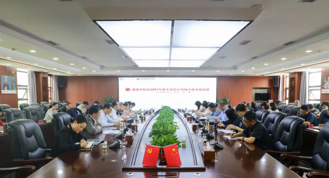 6月8日,学校在教学科研楼3楼会议组织召开了2022年度综合考核半年评估推进会,全体校领导、各部门主要负责人、各二级学院院长及党总支书记等40余人参加,会议由校党委副书记、校长汤健主持,校党委书记宋广强出席并讲话。