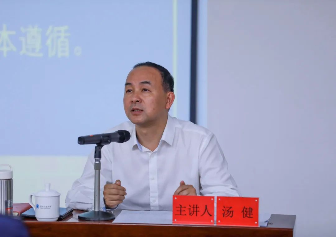 6月8日下午,党委副书记、校长汤健教授在科研楼一楼阶梯教室为学校师生代表讲授了一堂生动的思政课。