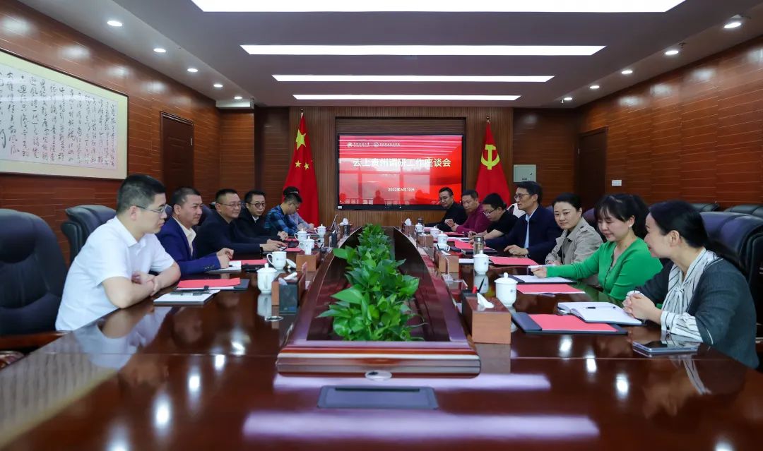 2022年6月10日,云上贵州大数据产业发展有限公司党委书记张平,党委委员、副总经理陈蔚等一行到我校进行交流调研,调研座谈会在我校云潭南路校区行政楼8楼第一会议室举行。学校党委书记宋广强、党委委员、副校长于立群出席座谈会,相关部门、学院负责人参会。