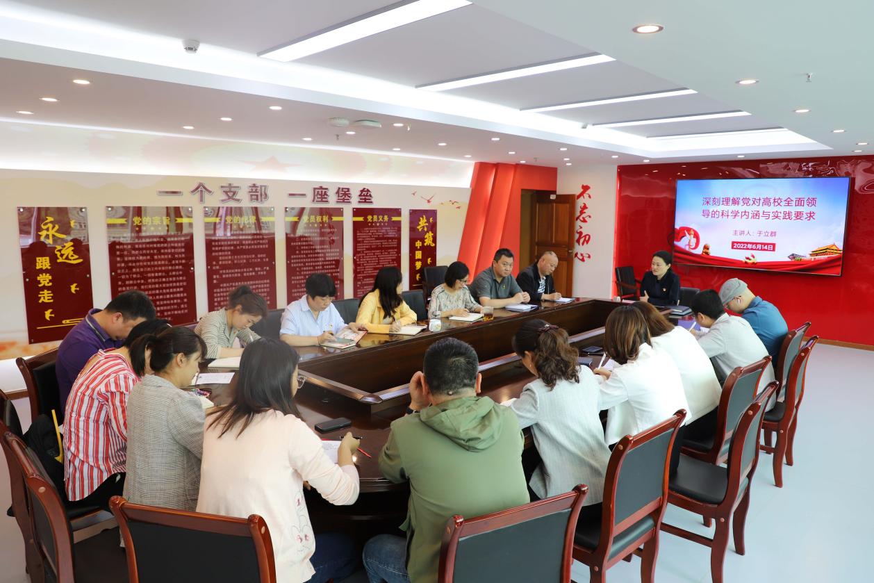 为深入贯彻落实2022年学校党建工作要点,严肃党内政治生活,2022年6月14日上午,学校党委委员、副校长于立群以《深刻理解党对高校全面领导的科学内涵与实践要求》为题上了一次深刻的党课。开放教育党支部、继续教育党支部全体党员同志参加了本次活动,开放教育学院党外教师代表张小丰列席。