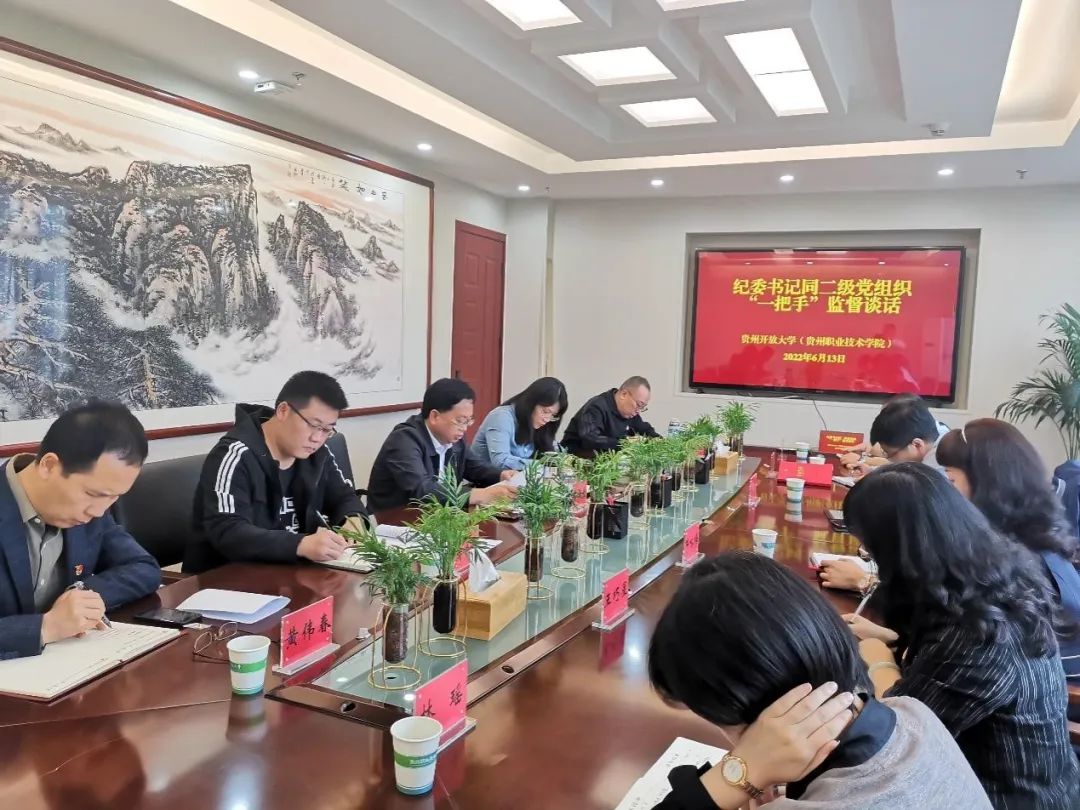 为认真贯彻落实党中央《关于加强对“一把手”和领导班子监督的意见》和十九届中纪委六次全会、十二届省纪委六次全会精神,切实加强对下级“一把手”的日常监督,6月13日,贵州开放大学(贵州职业技术学院)纪委书记骆最勇在学校行政楼6楼会议室,集中对学校各级党组织“一把手”开展监督谈话。