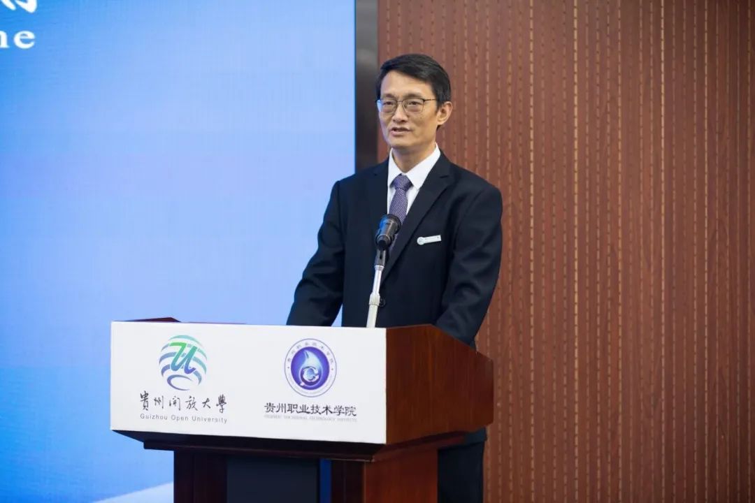 开班仪式由贵州开放大学(贵州职业技术学院)党委副书记、校长汤健主持,贵州省教育国际交流协会会长周宝英、贵州开放大学(贵州职业技术学院)党委书记宋广强、副校长李勤、贵州省教育国际交流协会培训部部长武跃华、贵州开放大学(贵州职业技术学院)各二级学院院长、项目授课教师和学生代表出席开班仪式。江苏经贸职业技术学院国际教育学院院长刁翔正以及来自“一带一路”沿线国家的60名国际青年学员通过云端线上参会。