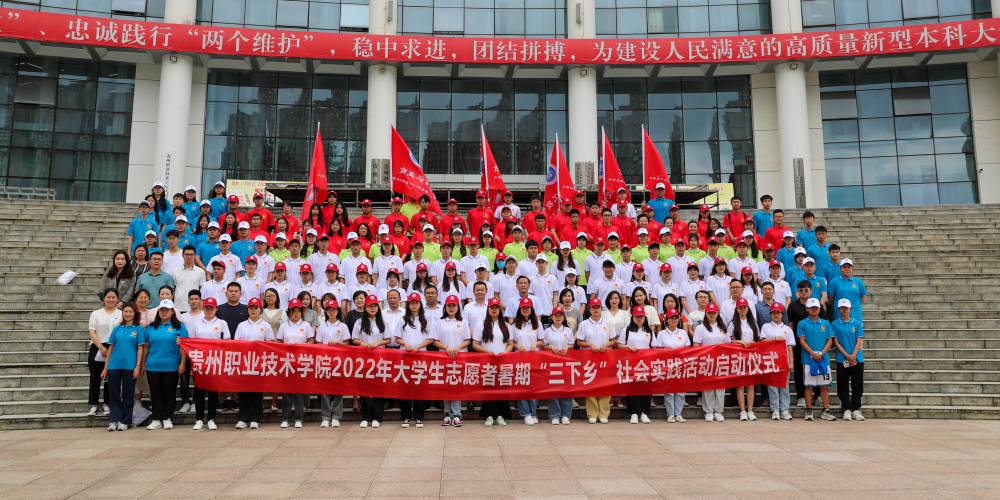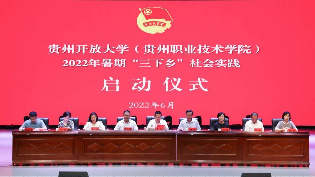 6月23日,贵州开放大学(贵州职业技术学院)大学生志愿者2022年暑期“三下乡”社会实践启动仪式在大礼堂举行。学校党委副书记龚辉出席启动仪式,党委宣传部、党委学工部、各学院党总支书记(院长)、校团委全体工作人员、各学院团总支书记,各实践团队指导老师、实践队员参加启动仪式。