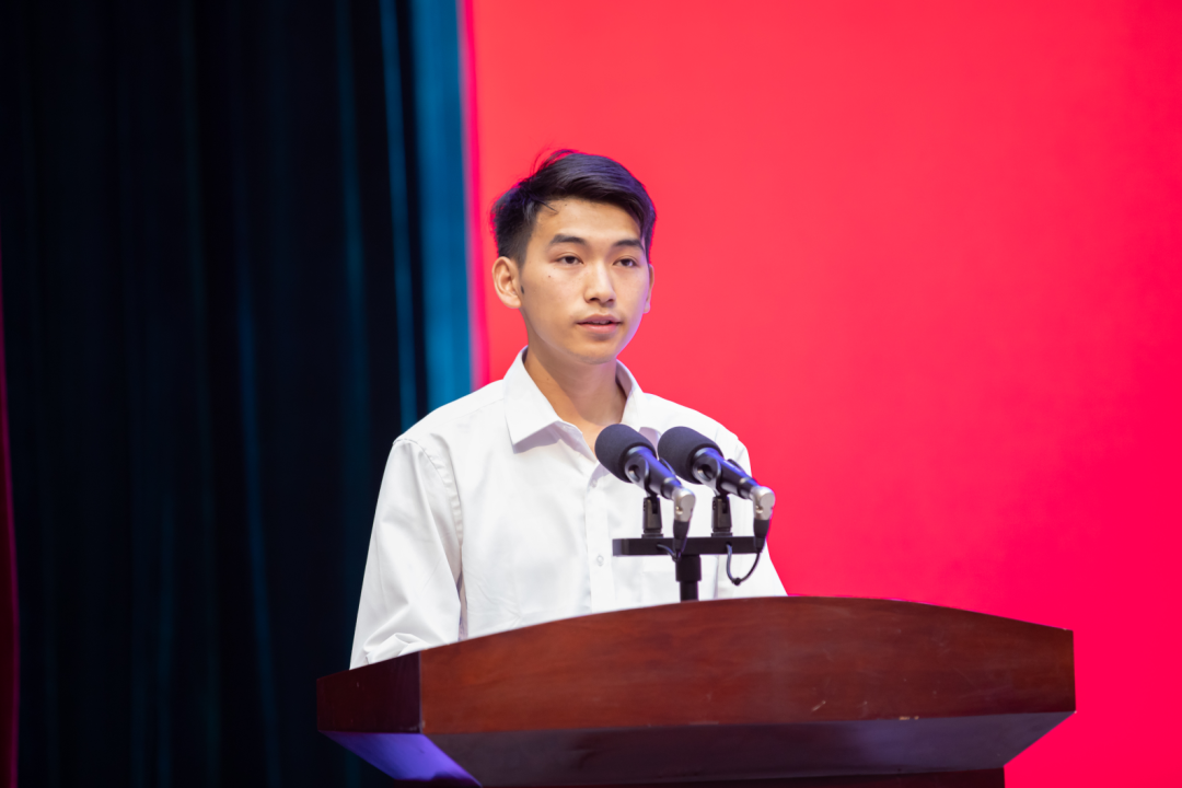 宋广强为“全国自强之星”“全省大学生年度人物”获得者颁奖。
