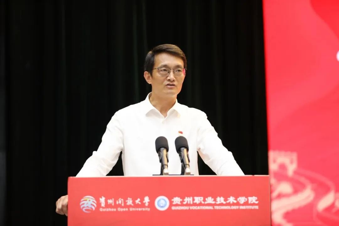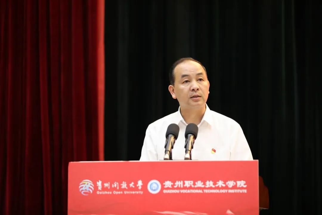 学校党委书记宋广强从三个方面谈了贵州开放大学(贵州职业技术学院)的初心,他指出,一要坚守初心,铸就新的光荣。在光荣里,有赶超进位的新高度,弯道取直的新坐标;有可圈可点的成绩单,增比进位的新突破;有激情燃烧的豪情,决战决胜的精气神。二要永葆初心,诠释新的内涵。初心不初心,关键在党心、在内心、在民心、在匠心。三要践行初心,开创新的局面。要用“功成不必在我”的胸怀抓建设,让格局大起来、胸怀大起来、气魄大起来;要用“功成必定有我”的担当抓建设,要强化“比”的意识、明确“比”的标准、提升“比”的实效,各项工作都努力创一流、走前列;要用“实干必能兴邦”的共识抓建设,要带头干、主动干、善于干、激励干,确保我们事业不断前进。