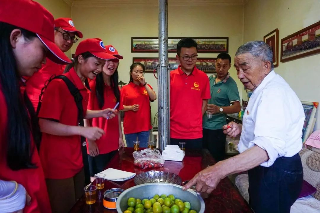 老支书的家就在旧居后,上坡便到。老支书就像一个邻家的爷爷,慈祥而又可爱地迎接我们。“你们从哪点来嘛,吃饭没得嘛?”,“吃李子,我今天自己讨(摘)的。”别开生面的专访,就在这温馨的氛围中开始了。老支书用质朴的语言讲述了历尽艰辛的修渠故事,让观察团成员近距离感受了“一个人、一辈子、一道渠”的榜样力量。黄大发爷爷告诉大家,年轻人要感党恩、听党话、跟党走,走得再远也不要忘记自己的家乡,要不计得失、用双手为父老乡亲创造幸福生活,实现中华民族伟大复兴的中国梦。质朴的语言蕴藏着无穷的力量,深深撼动了每一位观察团成员的内心。