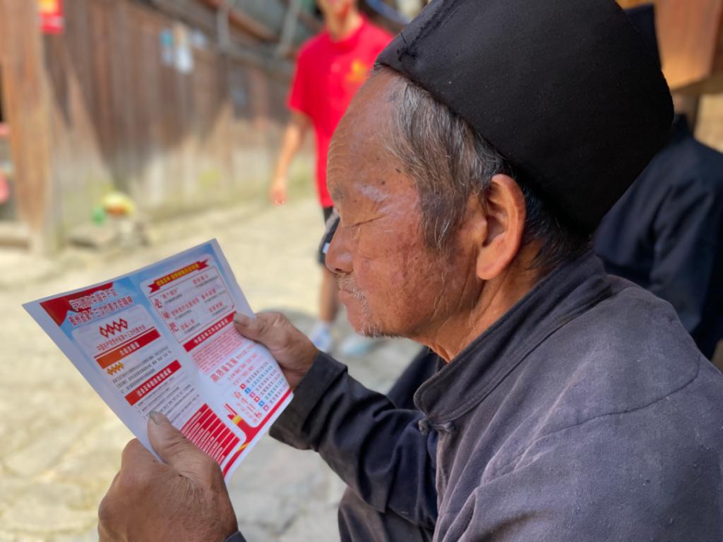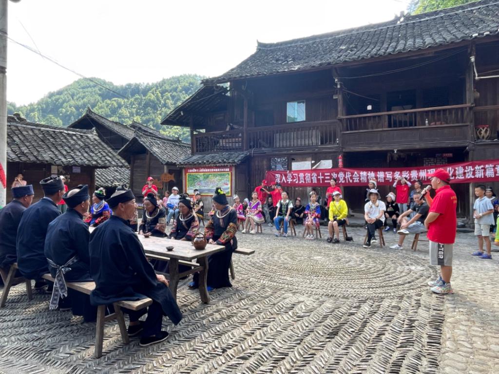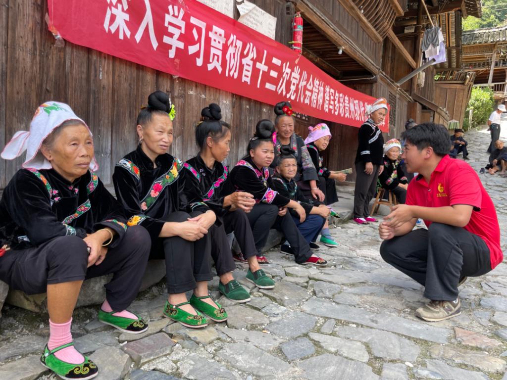 “双语”宣讲进苗寨,入乡随俗得人心。季刀苗寨(上寨)位于黔东南苗族侗族自治州巴拉河沿岸,是一个拥有600余年历史的苗族古寨,寨子中大多青壮年外出务工,长期居住的是不通汉语的老人和儿童,是名副其实的“留守老人、留守儿童”村。因此,宣讲团将群众相关的政策“掰开”“揉细”“嚼碎”,进行苗语、汉语双语宣讲,让群众听得懂、悟得透,鼓舞大家奋发向上,坚定信心跟党走、听党话、感党恩,奋力奔向幸福生活。