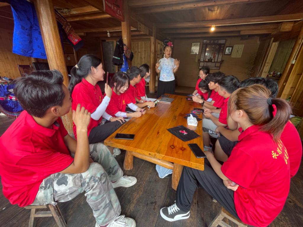 角色互换,创新宣讲模式。通过和村民互换宣讲角色,有效提升宣讲效果。通过“一对多”的集体宣讲和“一对一”的面对面宣讲,帮助苗寨群众更好地学习和领会省第十三次党代会精神。宣讲中,宣讲团成员转化角色,走入乡村振兴实践课堂,听取乡村振兴带头人陈琴同志关于季刀乡村振兴实践案例的思政课。通过乡村振兴故事的生动讲解,有效衔接了省第十三次党代会的精神的理论和实践。从校园课堂到乡村课堂,从宣讲员到践行者,加深了宣讲团成员对宣讲内容的认识,点燃了青年大学生乡村振兴的梦想,纷纷表示美丽季刀的建设,是成千上万个美丽乡村建设的缩影,需要我们发挥专业特长投身乡村振兴。