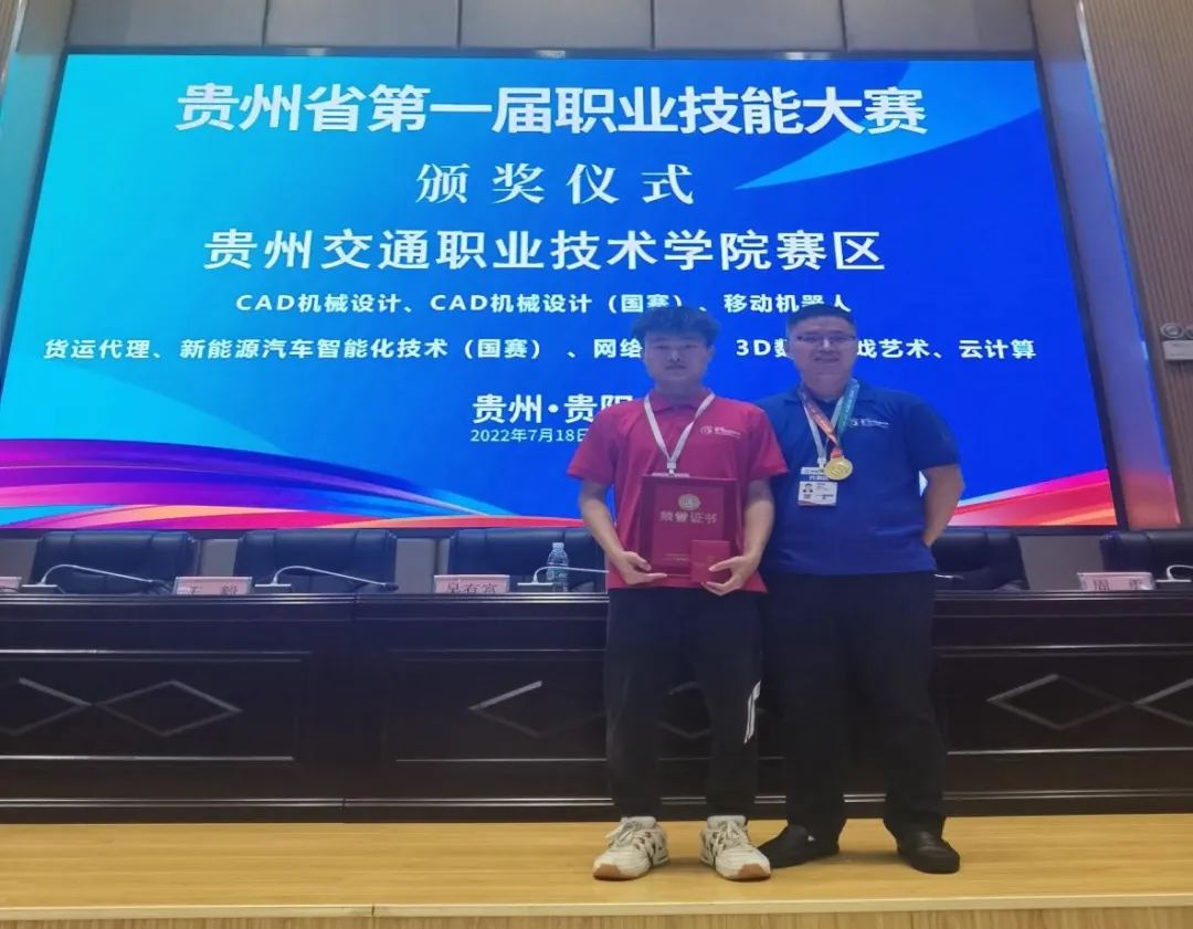 “技能黔行,创造未来”。7月19日,由贵州省人民政府主办,贵州省人力资源和社会保障厅、贵阳市人民政府承办的贵州省第一届职业技能大赛在贵阳隆重开幕。我校航空学院教师喻红中指导学生杨雨获得CAD机械设计赛项金牌(第一名)的好成绩,信息工程学院教师胡静指导学生戴洋洋、李峰获得工业4.0赛项优胜奖,商业与贸易学院教师黄兰获得网络直播营销赛项优胜奖。