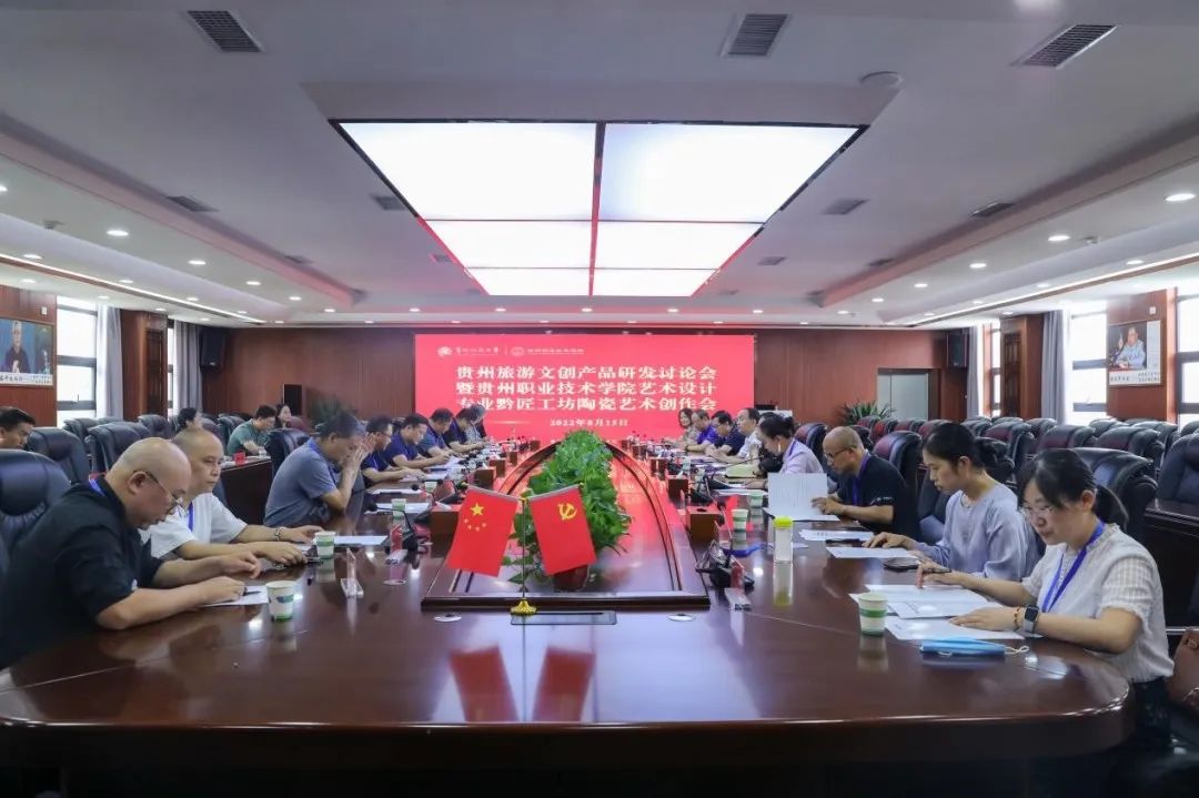 为深入贯彻新国发2号文件精神,把握贵州旅游文创发展的历史机遇,传承贵州民族文化工艺,开拓贵州旅游文创产品研发方向,促进黔匠工坊项目建设,8月15日上午,“贵州旅游文创产品研发讨论会暨贵州职业技术学院艺术与设计专业黔匠工坊陶瓷艺术创作会”在贵州开放大学(贵州职业技术学院)科研楼隆重举行。