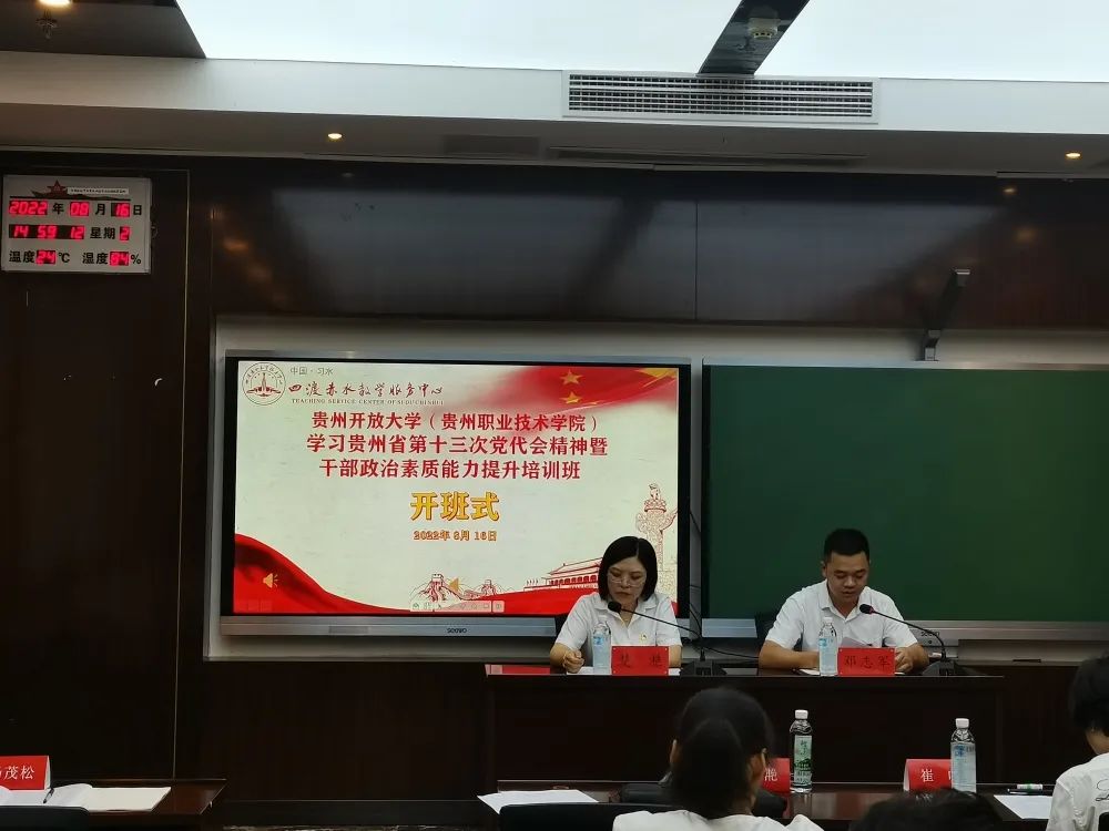 8月16日下午,培训班举行开班仪式,四渡赤水教学服务中心副主任邓志军同志致欢迎辞并为培训班授旗。受组织部委托,贵州开放大学(贵州职业技术学院)八鸽岩校区党总支副书记、开放教育事业部副主任楚滟同志作动员讲话并对此次培训提出三点要求:一是要充分认识此次培训的重要意义;二是要坚持做到“三心”,即安心、静心和用心;三是要严格遵守培训纪律和各项规定。希望各培训学员要珍惜这次难得的学习机会,一定要沉下心来学,静下心来思,真正做到学有所思、思有所悟、悟有所获。