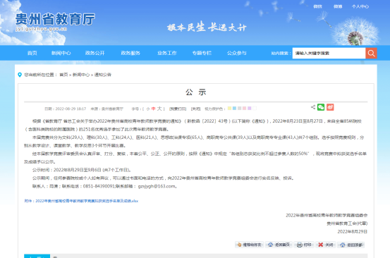8月23日至8月27日,由贵州省教育厅、贵州省总工会联合主办,贵州省教育工会、贵州师范学院等单位共同承办的2022年贵州省高校青年教师教学竞赛在贵州师范学院成功举办。来自全省85所院校(含医科类院校的附属医院)的251名优秀选手参加了此次青年教师教学竞赛。