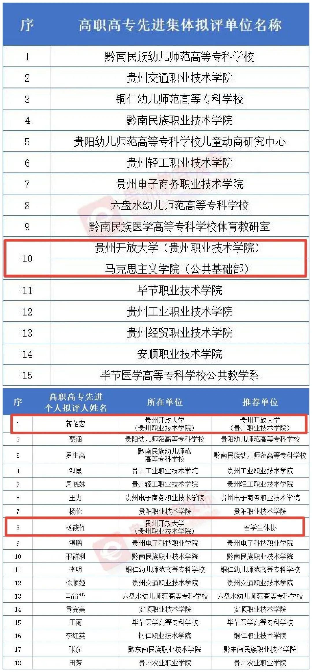 来自各市(州)教育局、体育部门,各高等学校、厅属高中,省学生体育协会通过选拔、择优推荐的方式报送材料,最终由省教育厅、省体育局组织专家组进行最终评选。我校马克思主义学院(公共基础部)获选评为2018-2022年度贵州省体育工作先进集体,我校体育教研室蒋佰宏、杨筱竹老师获评2018-2022年度贵州省体育工作先进个人。