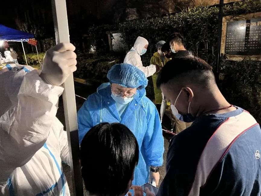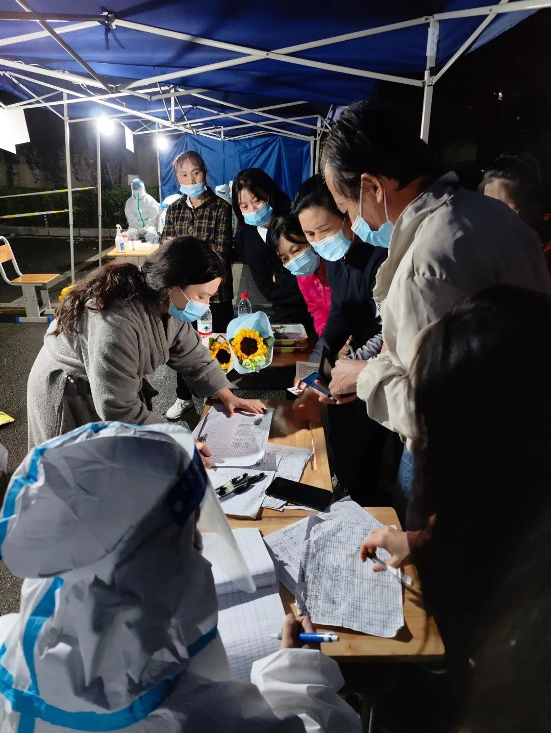 把党徽闪耀疫情防控一线的还有马克思主义学院吴思函,建筑工程学院阮秋宇,航空学院李丹丹,商业与贸易学院黄兰,图书馆刘莉娜,审计处杨琴等。“嬢嬢,请配合出示你的健康码!”“请大家保持一米的安全距离,有序排队。”“请提前打开健康码”……在核酸检测点,她们的一句句暖心提醒,让身处封闭小区内的市民感到温暖。在烈日下,她们身穿防护服,头戴口罩、面屏,协助做核酸检测的群众录入身份证信息,每天工作十多个小时。夜晚,她们又深入社区,协助社区工作,不厌其烦地向居民询问疫苗接种、核酸检测、近期旅居史等情况。她们说,能战斗在一线,为群众做力所能及的事,感到非常自豪。