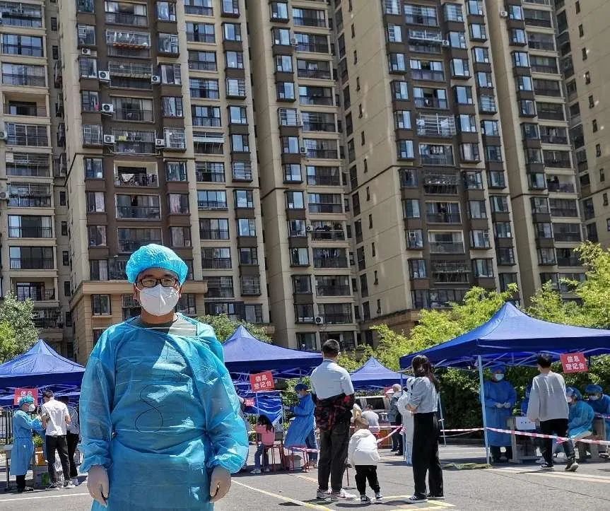 在中铁逸都某区内,一排排帐篷旁,不断有群众前来做核酸检测采样。发展规划处蒋泽刚身穿防护服,举手示意、扫码登记、抬手指引,动作干脆熟练。经过几天的核酸采集工作,蒋泽刚对工作流程已经完全掌握。但作为开大人的他,工作中的精益求精不是说说而已,他现在思考的是,如何使核酸检测现场更加科学规划、合理布置,如何使整个核酸检测流程有序、快速、安全。“疫情面前,每一个步骤都要正确,都要速度。作为党员,我必须要全力以赴。”他坚定的说。