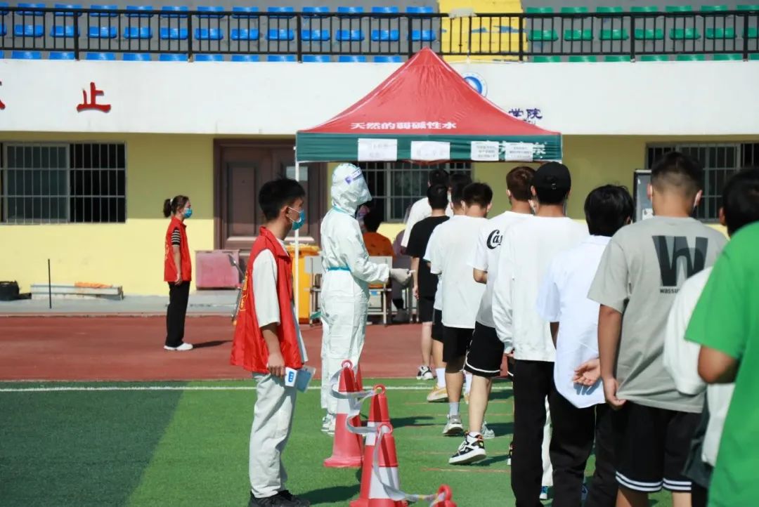 为组织学院982名学生以及学校食堂近200名工作人员进行核酸检测,31名志愿者们每天清晨6点多提前到达操场,布置场地,积极组织,在医务人员到来后以最快的速度开始核酸检测。号召同学们听从指挥、有序检测。他们站在炙热的阳光下,身上还是湿了又干、干了又湿。尽管这样,他们仍然选择坚守岗位、无畏付出,丝毫不影响他们的服务热情和质量。他们用实际行动筑牢了校园疫情防控安全线,构成了校园里一道道靓丽的风景线。