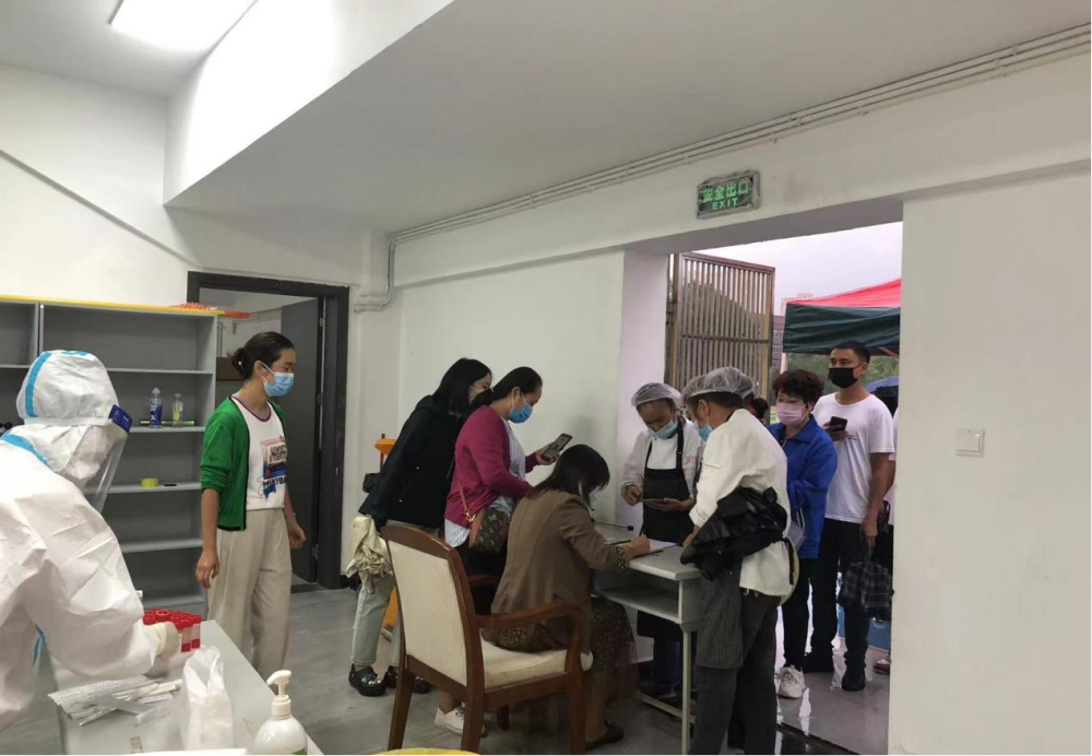 同时,党员同志们每天坚守在核酸检测点位,对290余名后勤保障人员的核酸检测、抗原检测情况进行名册登记和检测结果登记。“我这个程序怎么打开?”“我这个手机怎么扫不出来?”“我记不住我的身份证号啊!”年长的食堂叔叔阿姨们不太会操作手机,支部党员会耐心地指导他们扫码、登记,也会耐心地给他们讲解抗原检测的方法,党员同志们耐心、细心的工作让冰冷的疫情有了温度。“大家要戴好口罩,大家要注意拉开排队距离”,这样的工作反反复复、一遍又一遍,无论是细雨绵绵还是烈日炎炎,后勤处党支部都确保应检尽检、不漏一人。