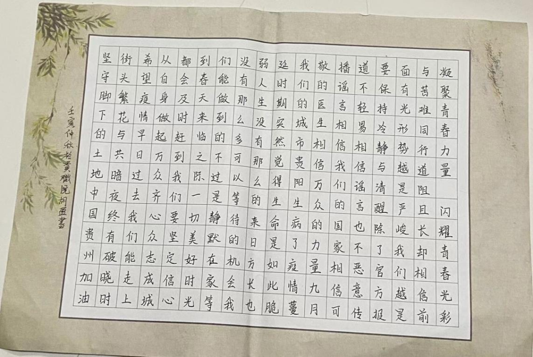 近日,商贸学院开展了“我的抗疫故事”书画摄影大赛,同学们从自己的角度发现身边好故事,记录抗疫点滴,用心传递温暖。此次大赛共收集作品50余件,并将通过“易班”把抗疫故事传递给更多同学,引起强烈共鸣。正如大数据与会计218班吴培说的,在疫情面前,有一种力量叫众志成城,有一种信心叫万众一心。他相信中国是一个在万千磨难中成长的千年古国,国家兴亡,匹夫有责。青年固有青年志,要向人生索取,不向命运屈服。抗疫如你我,早已在不知不觉中成了英雄。没有一个冬天不会过去,也没有一个春天不会到来。